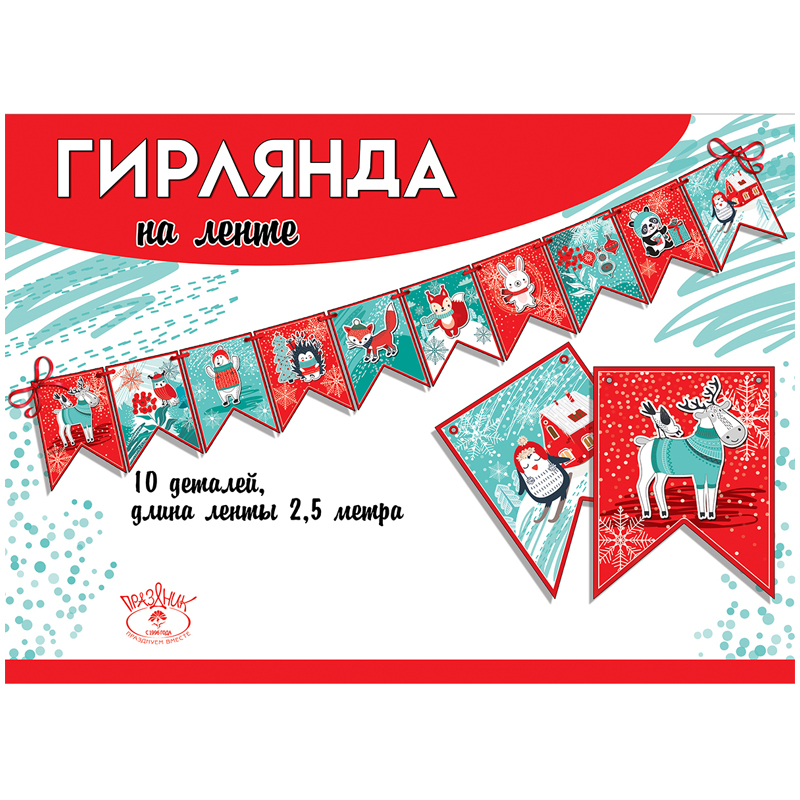 Гирлянда-флажки Праздник "Новогодняя", 250см, картон, на ленте