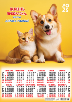 Календарь ЛИСТОВОЙ А2 (2025) Кот и пес. Жизнь прекрасна
