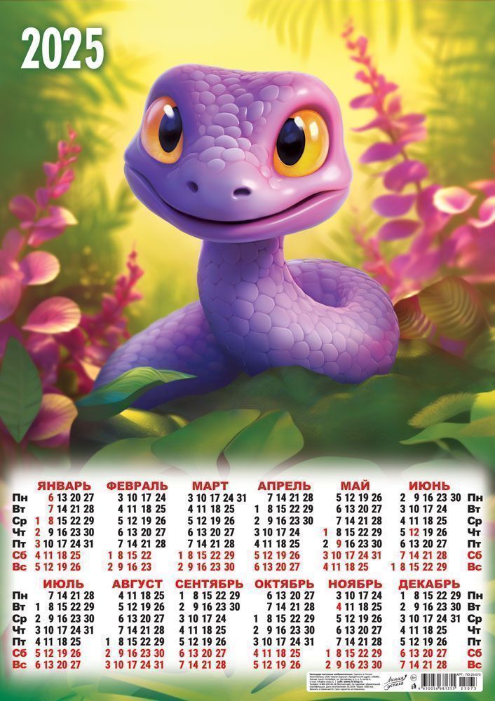 Календарь ЛИСТОВОЙ А2 (2025) Сивол Года. Забавные змеи (лиловый наблюдатель)