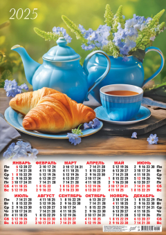 Календарь Листовой А2 (2025) Чаепитие.Румяные круассаны