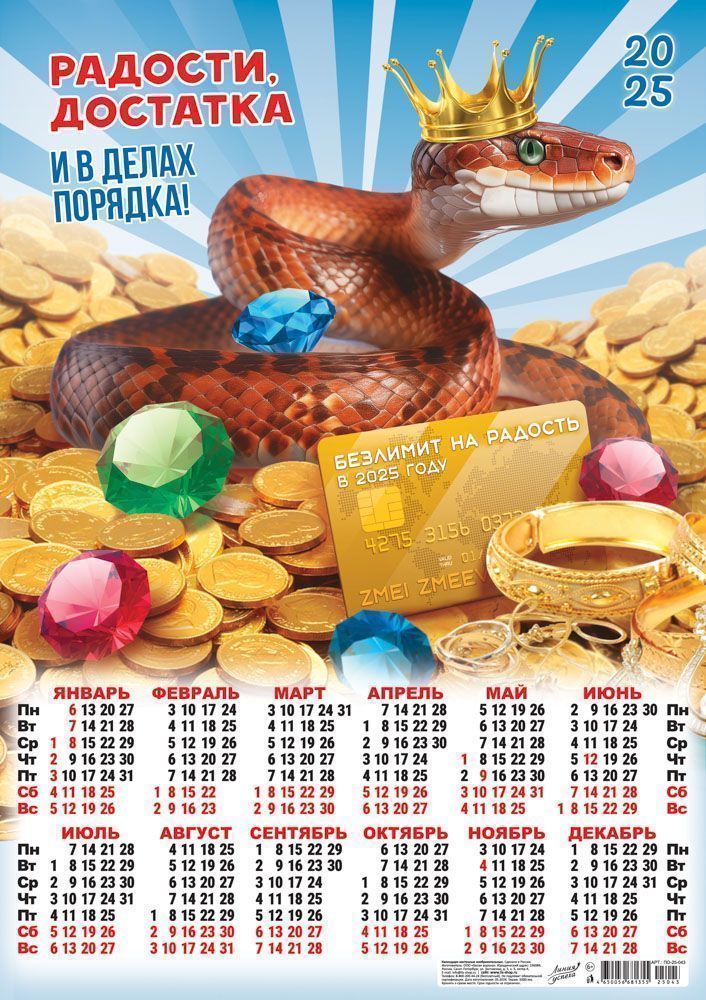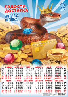 Календарь ЛИСТОВОЙ А2 (2025) Сивол Года. Радости и достаток (коллаж)