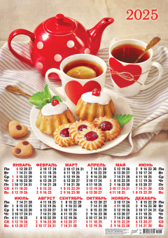 Календарь Листовой А2 (2025) Чаепитие. Чай с печеньем