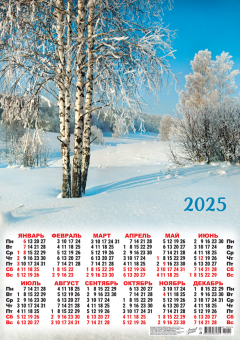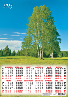 Календарь ЛИСТОВОЙ А2 (2025) Природа. Прекрасные березки