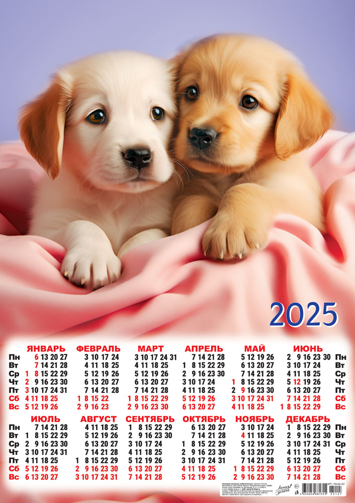 Календарь ЛИСТОВОЙ А2 (2025) Собаки. Милые пушистики