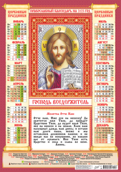 Календарь Листовой А2 (2025) Иконы. Господь Вседержитель (на красном)