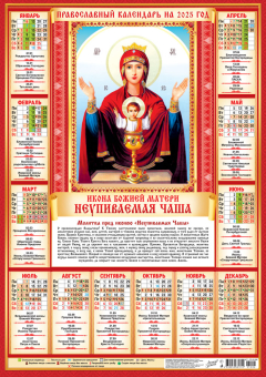 Календарь Листовой А2 (2025) Иконы. Неупиваемая Чаша (на красном)
