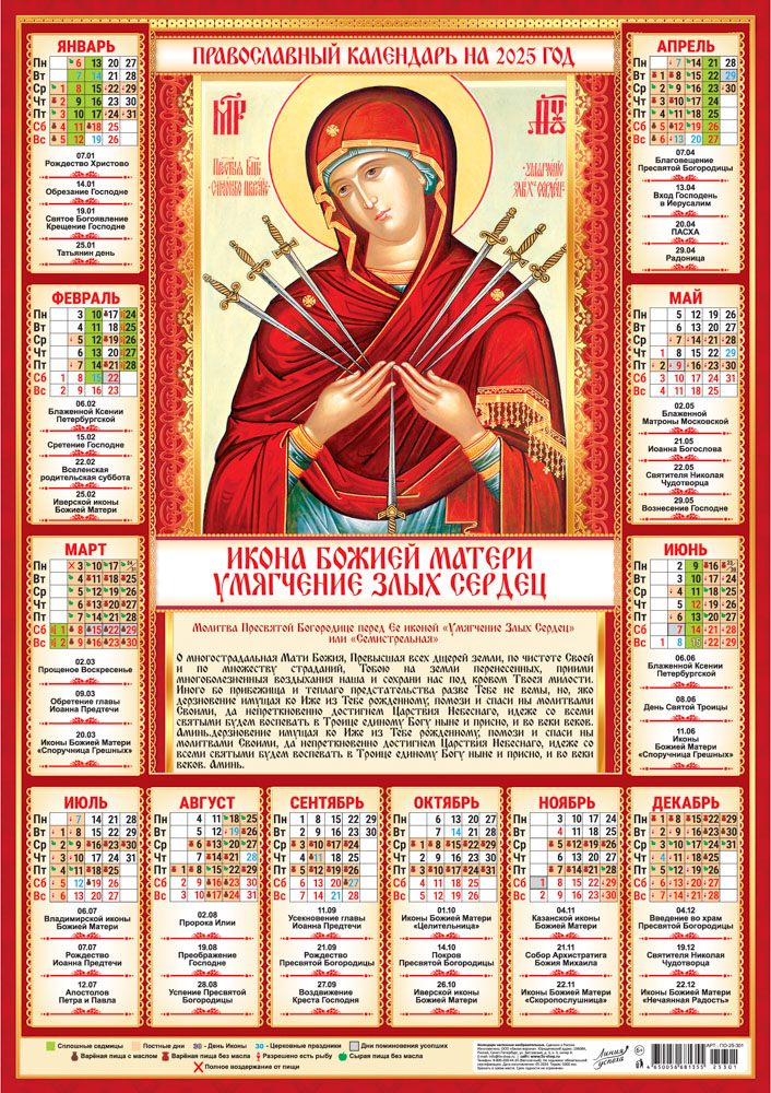 Календарь ЛИСТОВОЙ А2 (2025) Иконы.Умягчение злых сердец