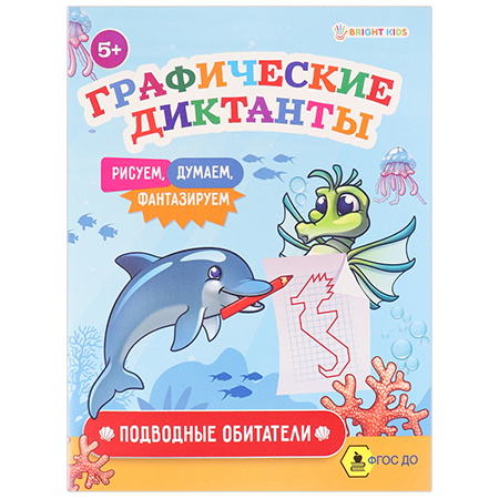 Обучающее пособие " Проф-Пресс " А5 16стр Bright Kids Графические диктанты Подводные обитатели, обложка - мелованный картон, на скобе, 165*210мм