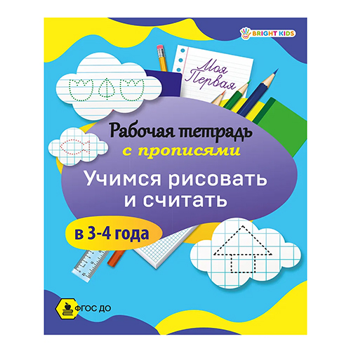 Рабочая тетрадь " Проф-Пресс " А5 16стр Bright Kids Моя первая. Учимся рисовать и считать в 3-4года, обложка - мелованный картон, на скобе, 165*210мм