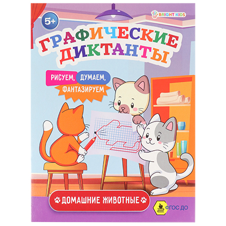 Обучающее пособие " Проф-Пресс " А5 16стр Bright Kids Графические диктанты Домашние животные, обложка - мелованный картон, на скобе, 165*210мм
