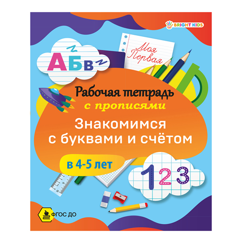 Рабочая тетрадь " Проф-Пресс " А5 16стр Bright Kids Моя первая. Знакомимся с буквами и счетом в 4-5лет, обложка - мелованный картон, на скобе, 165*210мм