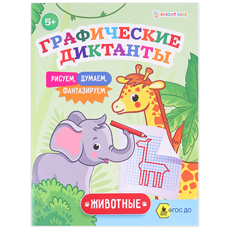 Обучающее пособие " Проф-Пресс " А5 16стр Bright Kids Графические диктанты Животные, обложка - мелованный картон, на скобе, 165*210мм
