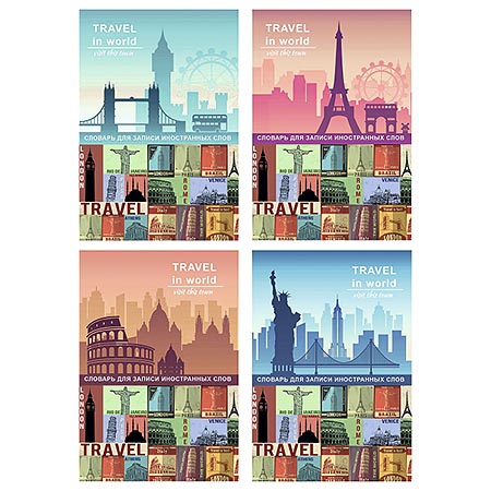 Тетрадь-словарь для записи иностранных слов МАЛЫЙ ФОРМАТ А5 48л " Проф-Пресс " Достопримечательности планеты, на скобе, обложка- мелованный картон, офсет, 4 дизайна в коробке