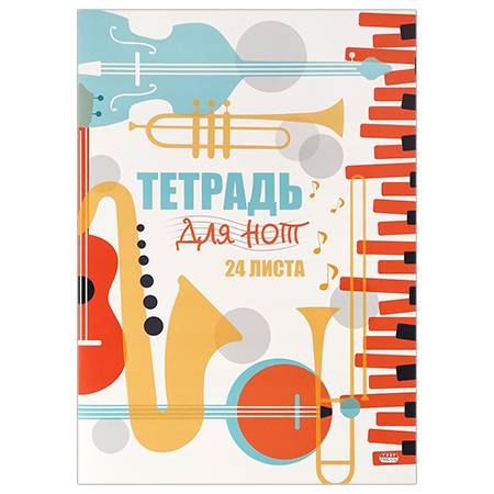 Тетрадь для нот " Проф-Пресс " А4 24л Музыкальная аппликатура, на скобе, цветная мелованная обложка