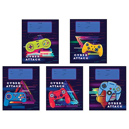 Тетрадь А5 18л " Проф-Пресс " клетка Атака геймеров (ассорти), офсет, на скобе, обложка - мелованный картон, 5 дизайнов в спайке