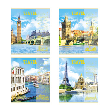 Брошюра А5 96л " Проф-Пресс " Город-4 (ассорти), клетка, второй блок, на скобе, обложка - цветная мелованная бумага, 4 дизайна