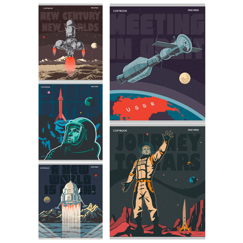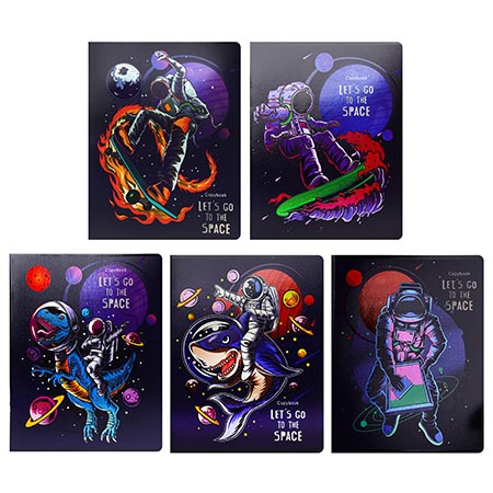 Тетрадь А5 48л " Проф-Пресс " Космические фантазии (ассорти), клетка, офсет, на скобе, обложка - мелованный картон, тиснение холодной фольгой, УФ-лак, 5 дизайнов