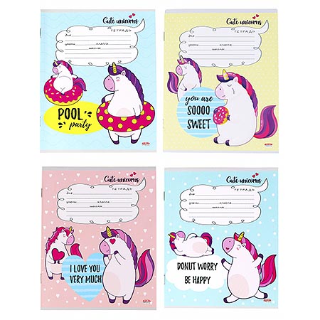 Тетрадь А5 12л " Проф-Пресс " косая линия Пухлые единорожки (ассорти), офсет, на скобе, обложка - мелованный картон, 5 дизайнов