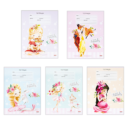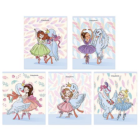 Тетрадь А5 48л " Проф-Пресс " Девочка и лебедь (ассорти), клетка, офсет, на скобе, обложка - цветной мелованный картон, выборочный УФ-лак, 5 дизайнов