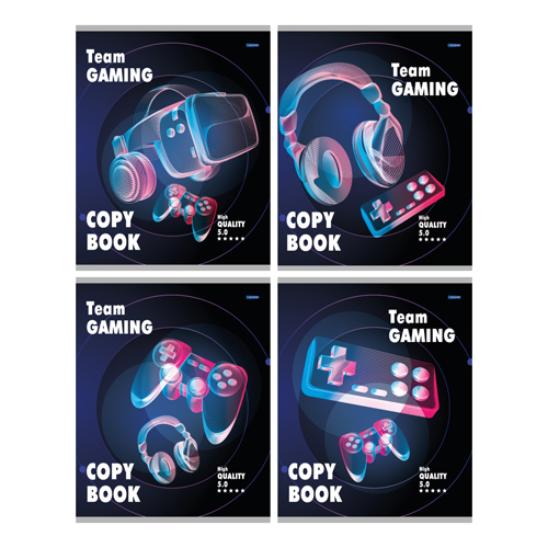 Тетрадь А5 96л " Проф-Пресс " Игровые атрибуты (ассорти), клетка, офсет, на скобе, обложка - мелованный картон, 4 дизайна, в коробке