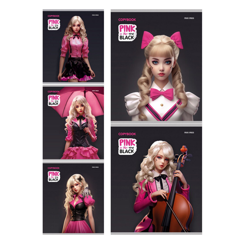 Тетрадь А5 48л " Проф-Пресс " Pink&Black (ассорти), клетка, офсет, на скобе, обложка - мелованный картон, 5 дизайнов