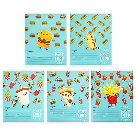 Тетрадь А5 24л " Проф-Пресс " клетка Клевый стритфуд (ассорти), офсет, на скобе, обложка - мелованный картон, 5 дизайнов