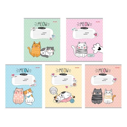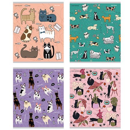 Тетрадь А5 96л " Проф-Пресс " Кошечки и собачки-1, клетка, офсет, на скобе, обложка - мелованный картон, твин-лак, 4 дизайна