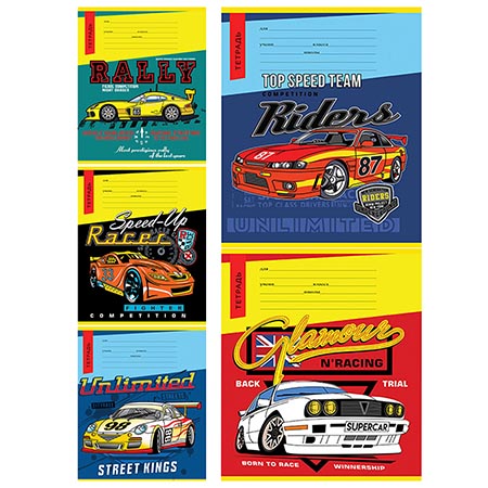 Тетрадь А5 18л " Проф-Пресс " клетка Гоночные легенды (ассорти), офсет, на скобе, обложка - мелованный картон, 5 дизайнов