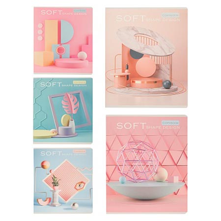 Тетрадь А5 48л " Проф-Пресс " Геометрические фигуры, клетка, офсет, на скобе, обложка - мелованный картон, софт-тач, 5 дизайнов