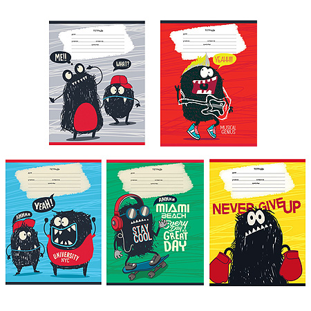 Тетрадь А5 18л " Проф-Пресс " линия Прикольные монстрики (ассорти), офсет, на скобе, обложка - мелованный картон, 5 дизайнов