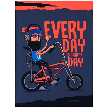 Ежедневник недатированный А5 145*210мм 7БЦ " Проф-Пресс " 128л Модный велосипедист, софт-тач ламинация, флуорисцентная печать, линия, белый офсет 60г/м2, печать в 1 краску