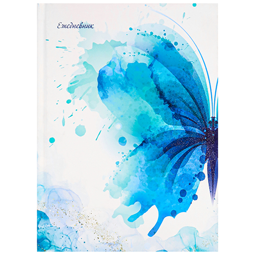 Ежедневник недатированный А5 150*204мм 7БЦ " Проф-Пресс " 128л Акварельная бабочка, линия, мелованный картон, софт-тач ламинация, глянцевый песок, белый офсет, склейка, справочная информация