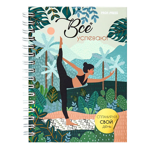 Ежедневник недатированный МАЛЫЙ ФОРМАТ А6 105*144мм 7БЦ спираль " Проф-Пресс " 48л Все успеваю. Безмятежность, в точку, матовый ламинированный картон, дизайнерский цветной блок, выборочный лак