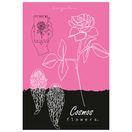 Ежедневник недатированный А5 150*205мм 7БЦ " Проф-Пресс " 80л Наброски на черно- розовом, линия, глянцевый ламинированный картон, софт-тач, белый офсет