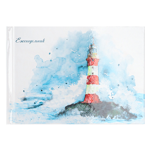 Еженедельник недатированный МАЛЫЙ ФОРМАТ А6 105*150мм 7БЦ " Проф-Пресс " 64л Одинокий маяк, горизонтальный, линия, глянцевый ламинированный картон, белый офсет, печать в 1 краску, склейка, справочная информация
