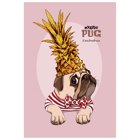 Ежедневник недатированный А5 150*205мм 7БЦ " Проф-Пресс " 136л Мопс с ананасом, лен, линия, белый офсет, сшивка