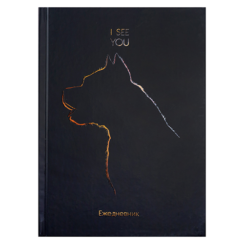 Ежедневник недатированный А5 150*204мм 7БЦ " Проф-Пресс " 128л Золотой контур, Собака, линия, мелованный картон, матовая ламинация, УФ-лак, белый офсет, справочная информация