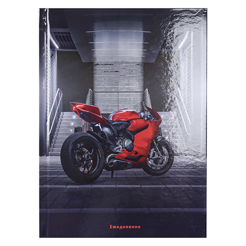 Ежедневник недатированный А5 145*210мм 7БЦ " Проф-Пресс " 80л Красные детали-2, Красный мотоцикл, глянцевый ламинированный картон, линия, контрасты, белый офсет, печать в 1 краску, справочная информация