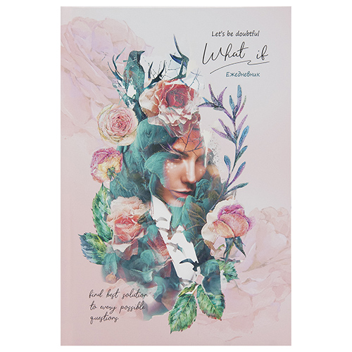 Ежедневник недатированный А5 150*204мм 7БЦ " Проф-Пресс " 80л Девушка в цветах, линия, ламинированный картон, покрытие софт-тач, перламутровая фольга, белый офсет, печать в 1 краску