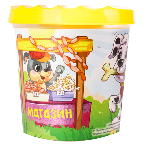 Стакан-непроливайка " Проф-Пресс " одинарный Щенки и покупки, печать холодной фольгой
