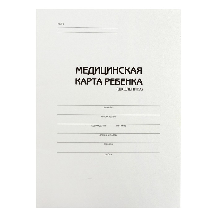 Медицинская карта ребёнка (школьника) А4, 16 листов, обложка картон хром-эрзац