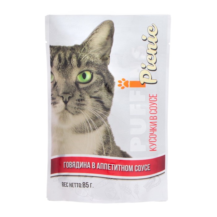 Влажный корм "Puffins picnic" для кошек, говядина в соусе, 85 г