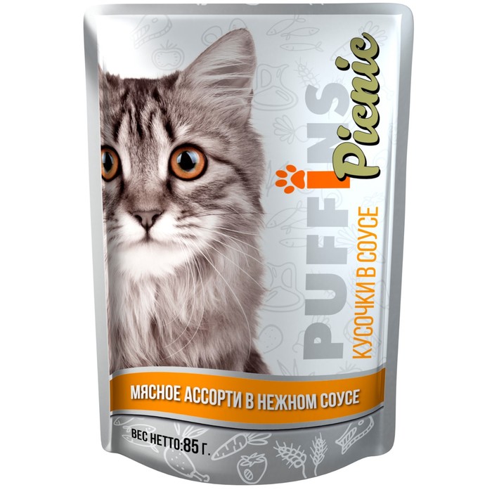 Влажный корм "Puffins picnic" для кошек, мясное ассорти в соусе 85 г