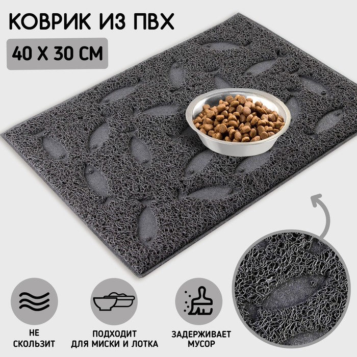 Коврик универсальный под миску и лоток «Рыбки», 30х40 см, серый
