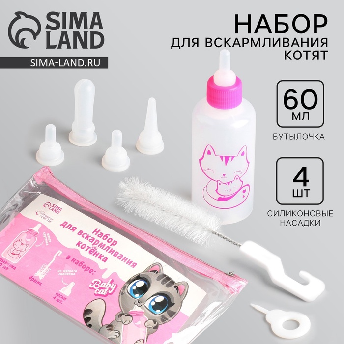 Набор для вскармливания «Пушистое счастье» для котят, 60 мл, с 4 сосками и ёршиком