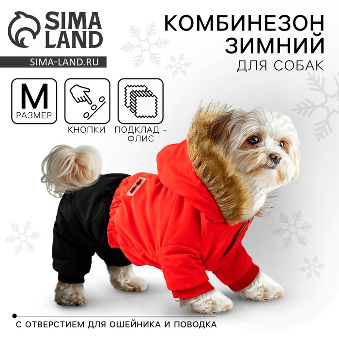 Одежда для собак. Комбинезон зимний «Тёплая зима», красно-чёрный, размер M
