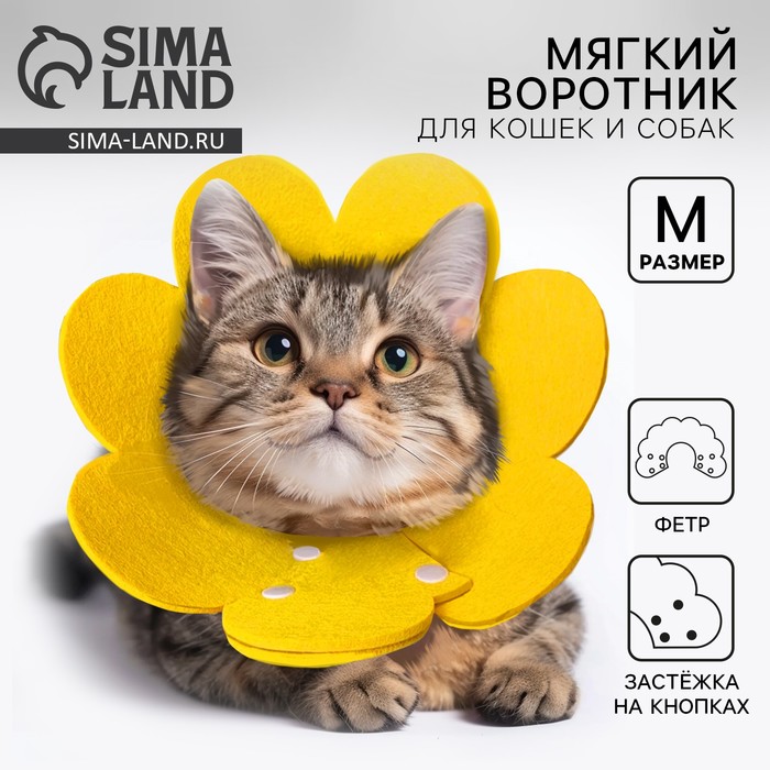 Ветеринарный защитный воротник для кошек и собак, желтый, размер M (обх. шеи 17-22,5 см)