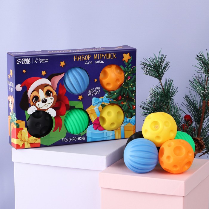 Набор мячей для собак «Подарочки!», 5 мячей