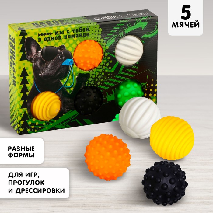 Набор мячей для собак «Мы с тобой в одной команде», 5 мячей