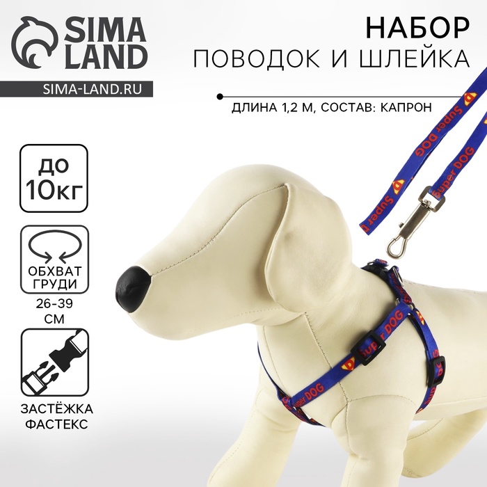 Комплект Super Dog, шлейка 26-39 см, поводок 120х1 см